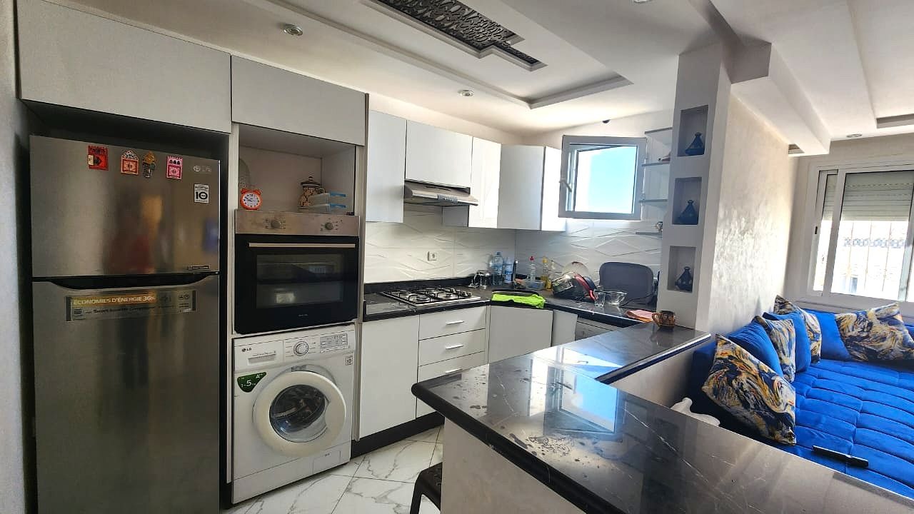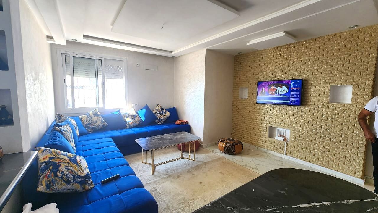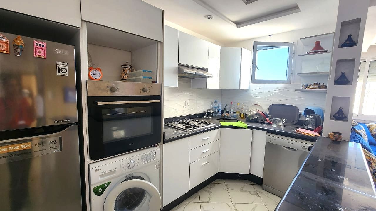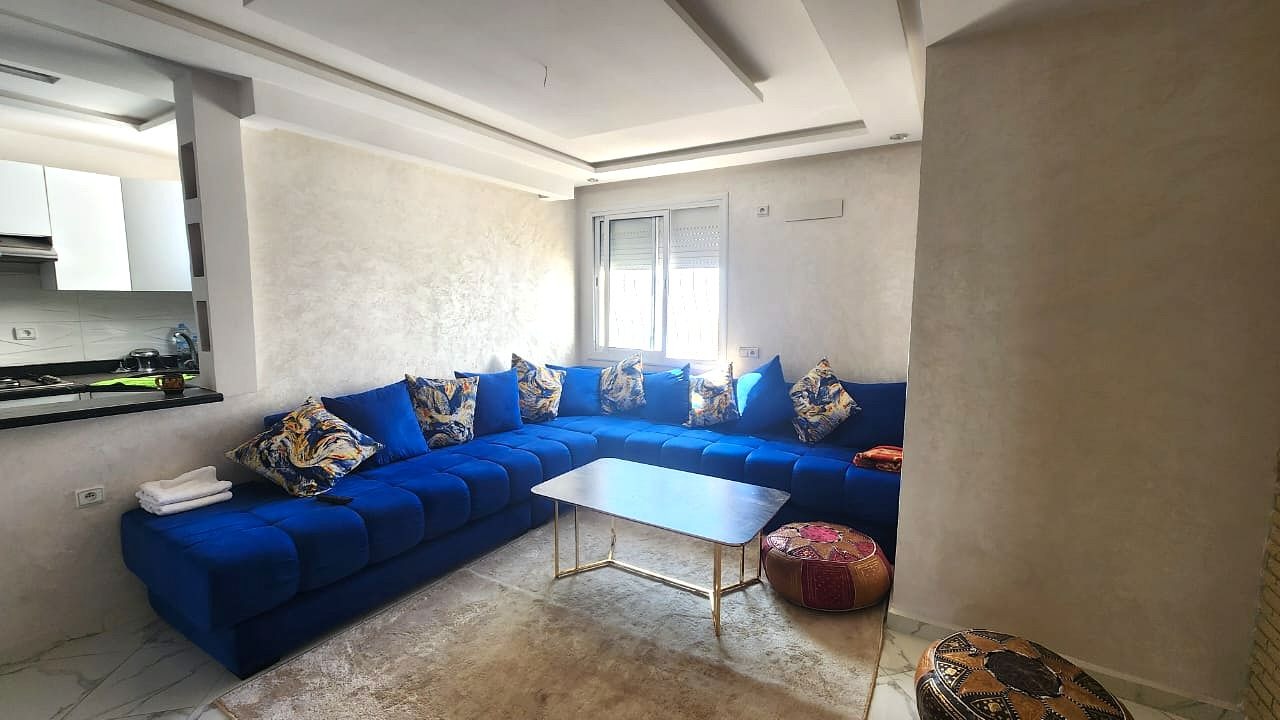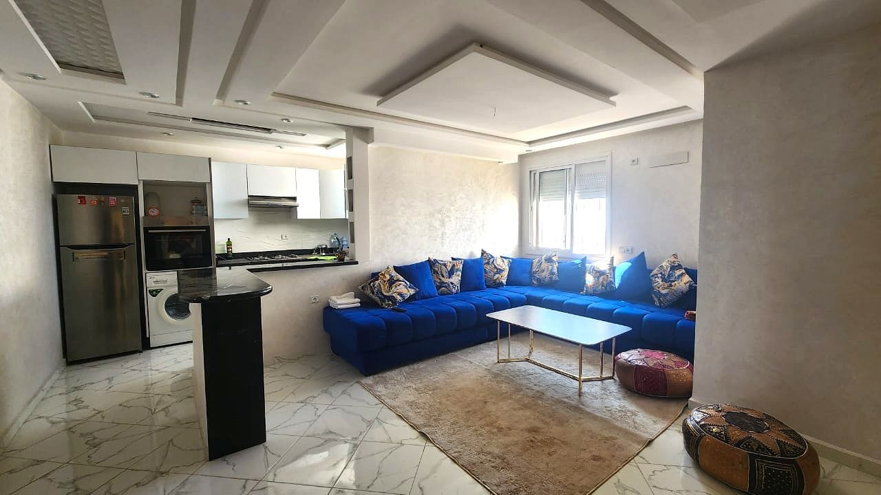 Offrez-vous un cadre de vie unique avec cet appartement d’exception de 57 m², entièrement rénové et meublé, situé au 6ème étage d’une résidence fermée sécurisée à Agadir-Ida-Ou-Tanane.